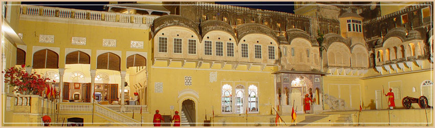 The fort of Mandawa was founded in the 18th century. Thakur Nawal Singh, son of Shardul Singh, founded the fort in Vikram Samvat 1812 (1755 AD). The fort dominates the town with a painted arched gateway adorned with frescoes of Lord Krishna and his cows. Built as per a medieval theme, the castle of Mandawa is adorned with beautiful frescoes. Rooms in the palace are decorated with paintings of Lord Krishna, exquisite carvings and amazing mirror work. The palace's Durbar Hall houses a number of antiques and paintings.